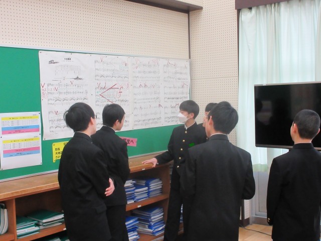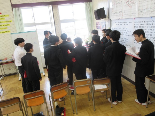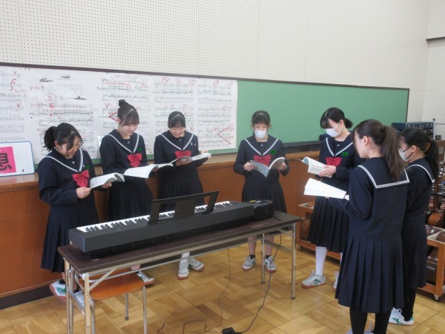 卒業式での合唱に向けて、パート練習をしています。全校合唱を作り上げるのは、生徒のみなさん一人ひとりです。みんなが自信をもって歌える合唱になることを願っています。