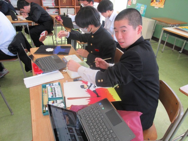 2月19日(木) 3年生美術科「自画像」
