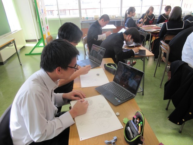 12月18日(木) 3年生美術科「自画像」