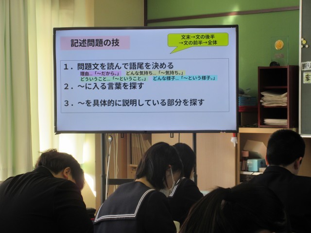 2月20日(金) 3年生国語科「記述問題の技」