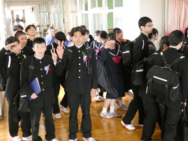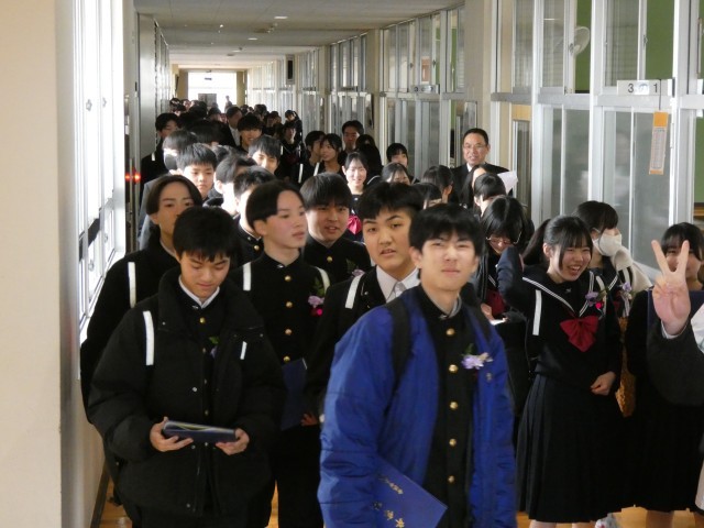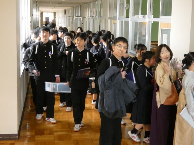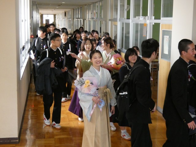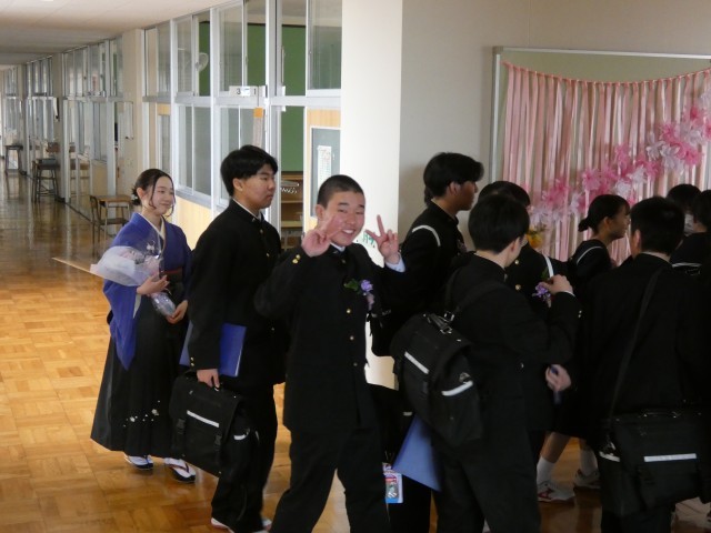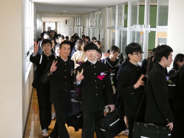 本日最後のご紹介は、卒業証書授与式を終え、在校生と保護者が待つ「歓送」の場へと向かう直前の様子です。