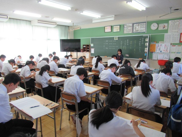 明日もテストは続きます。2年生は2教科、1年生と3年生は3教科のテストが残っています。