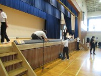 放課後は、演劇発表会に向けて、舞台練習ができるように各機材等のセッティングです。