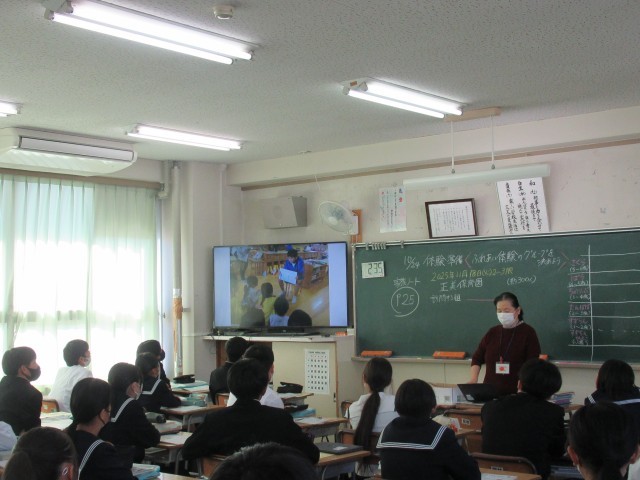 2年生は、毎年、「正美保育園」で園児とふれあい体験を行っています。絵本を読んであげたり、遊具で遊んであげたりと、幼い子とのふれあいを通じて、それぞれが何かを感じ取ってくれたらいいなと思っています。