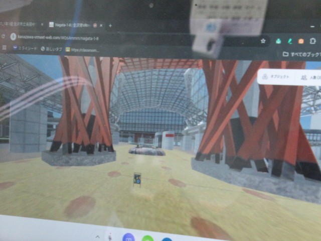 令和7年11月5日(水) 公開日 2025/11/05 更新日 2025/11/05 学校日記 昨日のメタバース体験では、金沢駅鼓門あたりを再現した空間をいろいろなものを配置して、お客様をもてなすといったことをしていました。