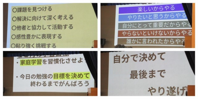 学習部からは、やる気のバロメーターと自分で決めたことは最後までやり遂げようという話がありました。