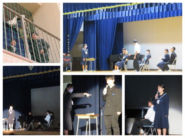 生徒指導部からは、生徒会執行部の寸劇を通して、11月の生活目標についての話がありました。