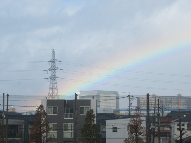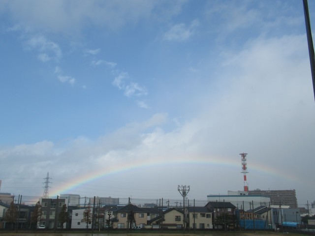 虹がきれいにできあがっていました。上の方から、赤、橙、黄、緑、青、藍、紫(せきとうおうりょくせいらんし)とはっきりと見えます。