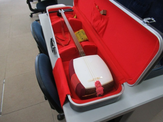 初めて三味線を触りましたが、意外とずしっときて重く感じました。