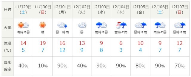 気象庁の予報だと、来週は最高気温が一桁の日が増えてくるようです。