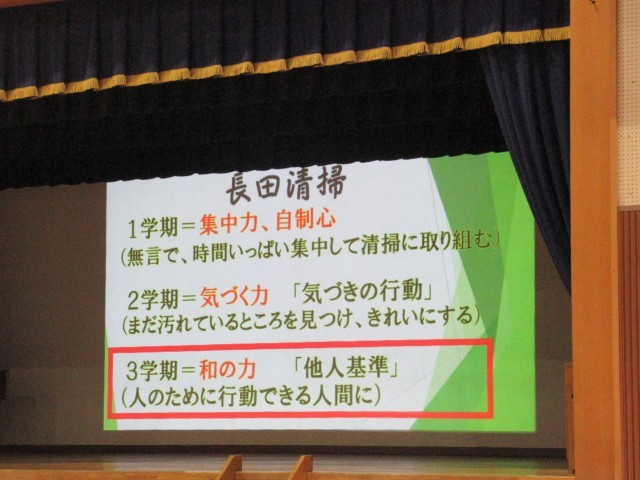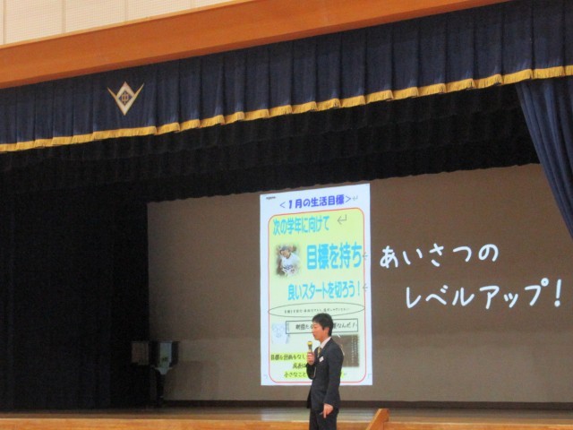 生徒指導部からは、長田清掃のこととあいさつレベルアップを目指そうという話&関連したコラボ寸劇(生徒会役員と野球部)がありました。