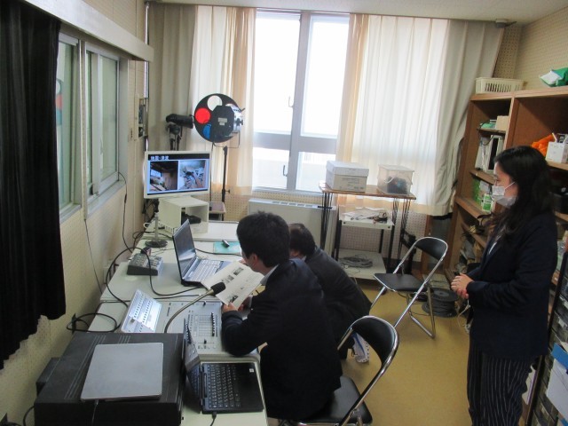 インフルエンザ等の罹患者や体調が悪くなった生徒が増えてきていますので、今日の全校集会は放送室から行いました。