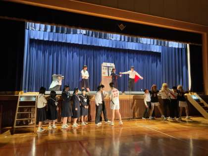 演劇発表会まであと2日!3年生は最後の舞台稽古! 公開日 2024/10/22 更新日 2024/10/22 学校日記 3年生、最後の舞台稽古です。さすが3年生!演出や舞台監督の指示のもと、本番さながらに迫真の演技!明後日の本番では、きっと最高の舞台を見せてくれる、そんな期待感あふれる内容でした!