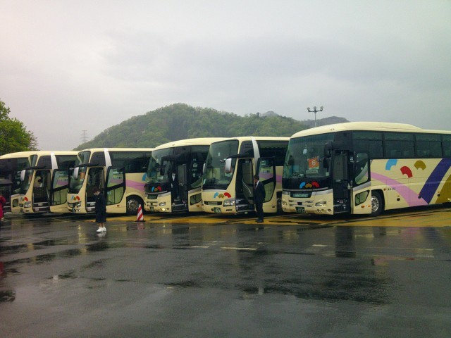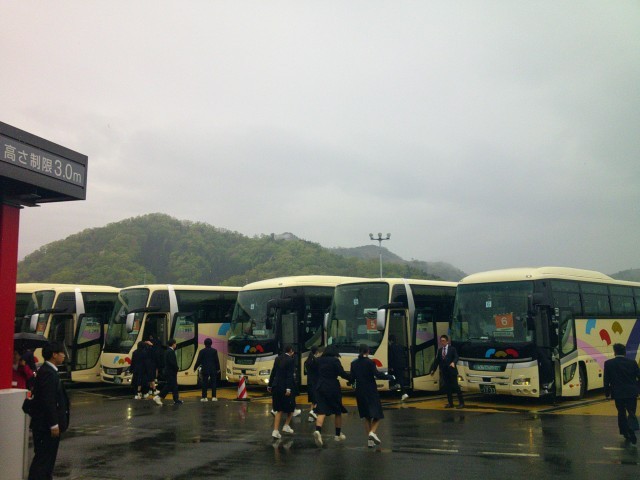 雨が降ってきましたが、順調に進んでいます。南条で10分トイレ休憩。安全を確認して、バスから降りてトイレへ。外は、雨ですがバスの中は、元気な笑い声でいっぱいです。羨ましい限りです。G先生の点呼が完了して、バスは出発です。次は草津SAで、休憩し、6号車は、清水寺へ向かいます。1号車は嵐山、2号車は金閣、3号車は平安神宮、4号車は伏見稲荷、5号車は二条城。そこから、班別自主プランが始まります。