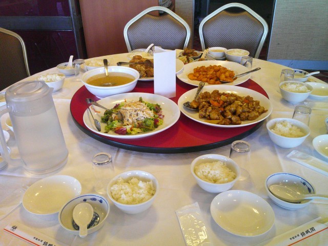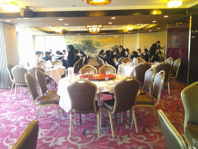 1組・4組は渋滞で遅れていますが、2・3・5・6組は全員そろったので予定通り円卓を囲み本格中華を食べ始めました。