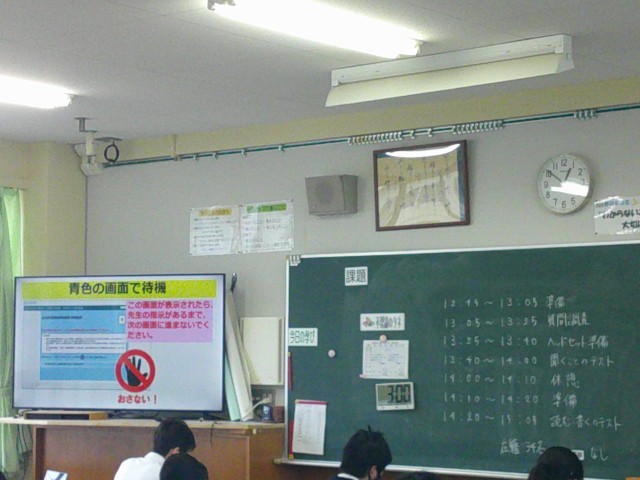 学習用端末を活用しての「聞くこと」調査でのヘッドホーンの音量、聞きづらさなどの機器の不都合もあり、慌てましたが、英語科の先生方をはじめ多くの先生方が、みなさんのために走り回ってくださったおかげで、予備機等で対応することができました。無事に全ての学級で実施できました。朝から、端末の準備、調査問題の配付準備等をしていただいた、3年生の先生方、S先生、教頭先生、ありがとうございました。梱包作業も終わりそうです。