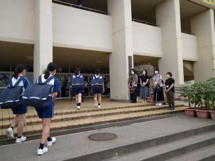 保護者の皆様協力のあいさつ運動 公開日 2022/06/24 更新日 2022/06/24 学校の様子 本日はPTA活動の1つとして、PTAによる玄関でのあいさつ運動がありました。 生徒は恥ずかしそうながらも、きちんとあいさつをしていました。朝早くからご協力いただきました保護者の皆様ありがとうございました。これからもよろしくお願いします。