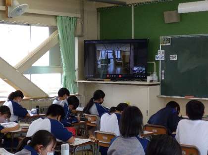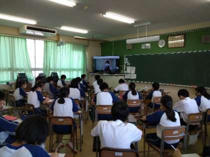 2年生が7/5(火)・6(水)に職場体験として、事業所と学校をオンラインでつなぎ、仕事の様子やそこで働いている方からお話を聞く活動を行いました。これまでは、生徒は3日間事業所を訪れて、実際に働いてみるという活動を通して学習していましたが、コロナ禍でR2・3年度はやむなく中止とさせていただきました。今年度についても、まだ状況は難しいと考え、お話を聞くだけでなく、実際の職場の様子を映像を通して体験してもらいました。協力いただきました、社会福祉法人のぞみ乳児保育所様、北國銀行様、特別養護老人ホーム第二万陽苑様、洋服の青山様、木村歯科医院様、介護老人保健施設あっぷる様、石川県視覚障害者情報文化センター様、株式会社ディスティーノ様には、心より感謝申し上げます。