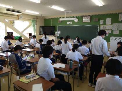 39日間の夏休みどうでしたか。夏休みも各種試合やコンクールお疲れ様でした。夏休み中は石川県をはじめ全国で大雨災害があり、野田中校区の3小学校も避難所になり、地域の方々には心よりお見舞い申し上げます。学校では大きな交通事故や水の事故がなく本当によかったです。ただ、連日の暑さから体調を崩した人がおり、今後も水分補給、マスクを適切に外す、早めの休憩など自らが心がけてください。