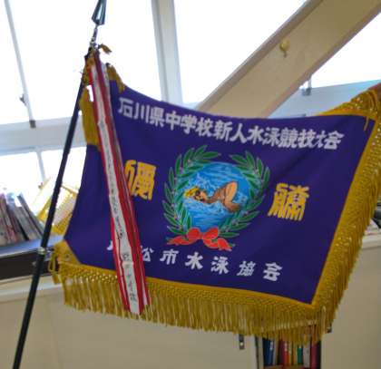 県中学校新人水泳競技大会で男子総合優勝を果たす 公開日 2022/09/05 更新日 2022/09/05 学校の様子 9月4日(日)に小松市末広屋外水泳プールで開催された大会で、400メドレーリレー2位、100m平泳ぎ2位、100m自由形2位、400m自由形1年の部2位、2年の部2位、400mリレー1位となりました。この結果、男子の部で、総合優勝となりました。 おめでとうございます。次は、10日に市新人大会が開催されますので、今回同様に頑張ってください。写真の優勝旗を、校内に展示します。