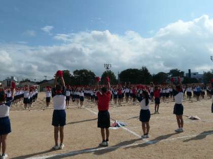 運動会は大成功でした(その1) 公開日 2022/09/14 更新日 2022/09/14 学校の様子 少し風が強かったですが、雨が降ることなく無事運動会を終えることができました。どの団も一生懸命の応援合戦、そしてそれに応える競技の頑張りがあり、とても楽しく有意義な1日となりました。今後、学校、学年便りなどでも紹介されると思いますが、少しだけ写真を掲載します。また、応援にお越しいただきました保護者の皆様、暑い中ありがとうございました。