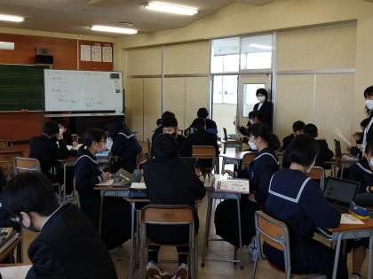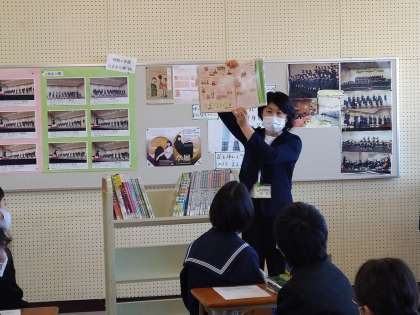 図書館を活用した授業の様子について 公開日 2022/12/12 更新日 2022/12/12 学校の様子 今日は1年1組の音楽の授業で、図書館の本をつかって授業をしました。世界の楽器調べで、本で調べてその楽器の音をクロムブックで聞く。その後、グループでの話し合いがありました。これからも、図書館の本を使ったり、図書館を使用する授業を積極的に取り入れていきます。なお、この授業は週に3日来校してもらっている学校司書と教科担任がティームティーチングで授業を行っています。