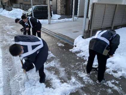 雪かきボランティアが頑張りました 公開日 2023/01/31 更新日 2023/01/31 学校の様子 本校の伝統になっている「雪かきボランティア」、今年は長坂台地区を中心に生徒を募りました。そして、今日、雪かきをする人がいなくて困っている家庭に応援に出かけました。参加者は一生懸命頑張ってくれました。各ご家庭の人からも感謝されました。お疲れさまでした。 これ以外にも、スリックしている車を押したなど、感謝の電話が野田中学校に複数本届きました。これからも地域の学校として頑張りたいです。