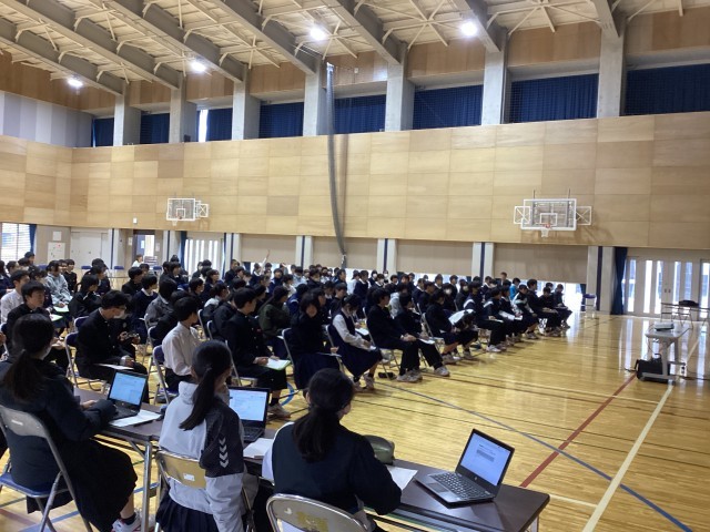 11月21日(金)、期末テスト2日目が終了した後に、2年生の進路学習「高校高専の先生に学ぶ会」が行われました。