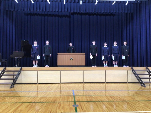 そして、令和7年度生徒会役員の退任式、令和8年度前期生徒会役員の認証式も行われました。全身全霊、粉骨砕身で生徒会活動に取り組むと力強く宣言してくれました。楽しみです!