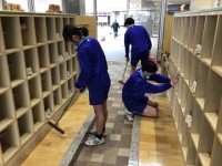 3/24(火)、朝から教室の大掃除が始まりました。掲示物をはがし、机の脚と椅子の...