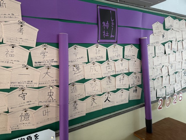 1年生は、新年の抱負を漢字一文字で表し、掲示しました。