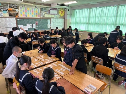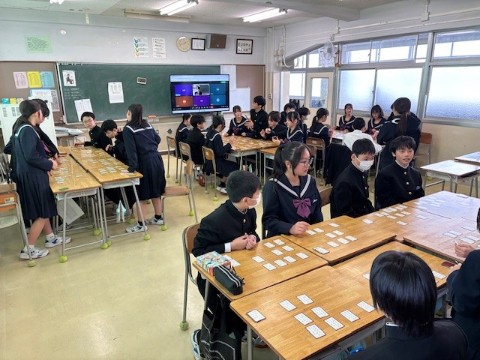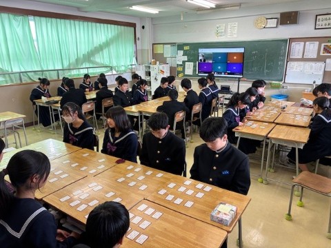 別室から先生が読み上げ、クラスを超えて対戦しました。外はまだ雪がちらついていましたが、教室の中は熱気あふれ、真剣なまなざしや歓声に包まれていました。順位を超え、ねらいが達成できた学年行事となりました。