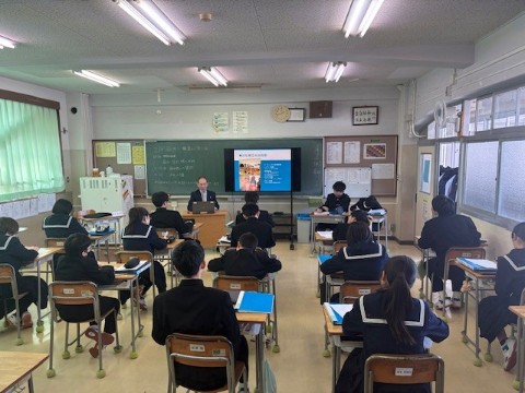 職業人に学ぶ会(1年) 公開日 2026/02/05 更新日 2026/02/05 学校の様子 本日、1年生対象に「職業人に学ぶ会」を開催しました。生徒が7つのグループに分かれ、前半は農業、保育、和菓子製造、スポーツインストラクター、アナウンサー、薬剤師、食品流通業それぞれの職業の方から専門的なお話を聞くことができました。次は後半のものをご紹介します。 +4