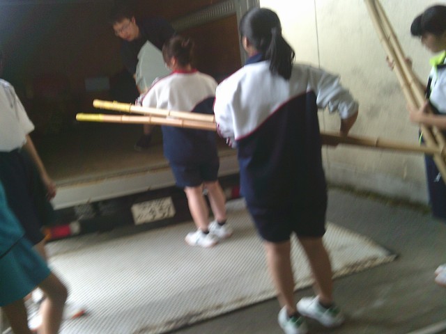 いしかわ総合スポーツセンターでの実施ということで、トラックに道具を積み込みました。