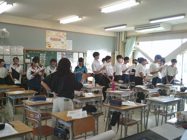 終礼後20分の練習です。今日は初日ということもあり、楽譜を見ながら歌っている人が多かったようです。