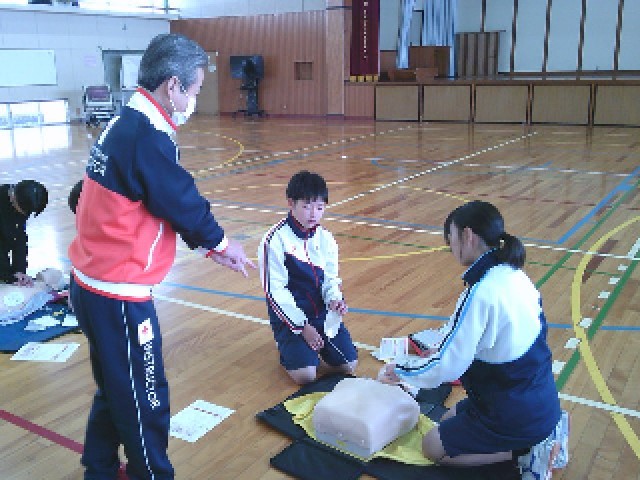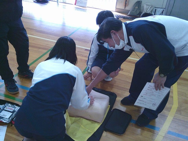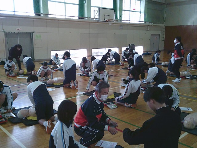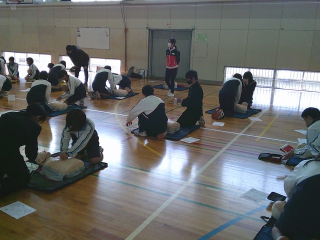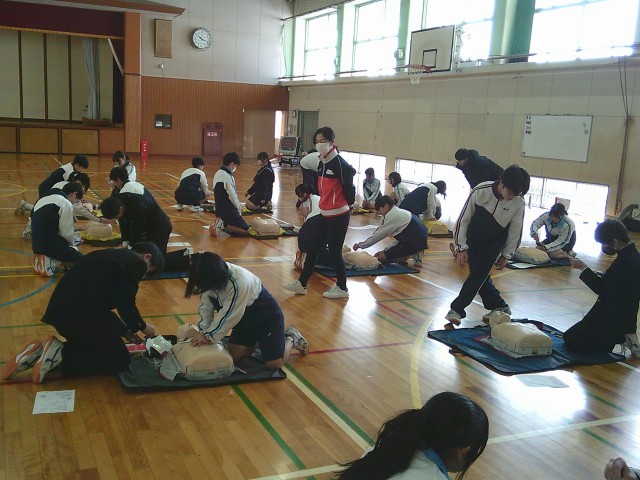 5日(木)の午前中、2年生の保健体育の授業で、救急救命法講習会がありました。