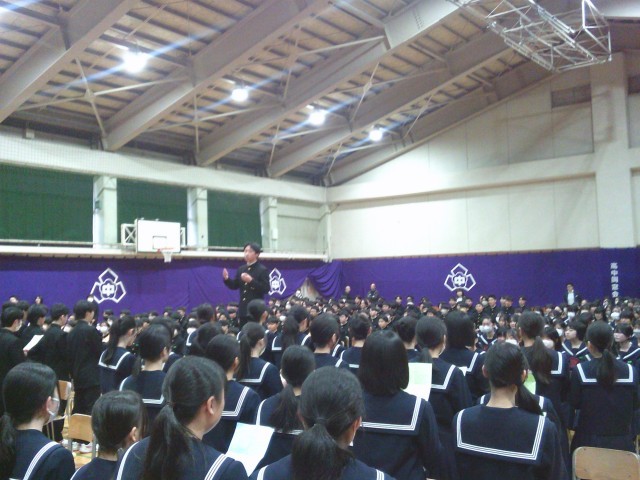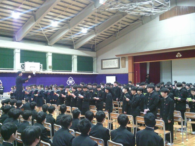 メッセージと「YELL」のプレゼントでした。在校生の方を向いて大きな声で歌ってくれました。