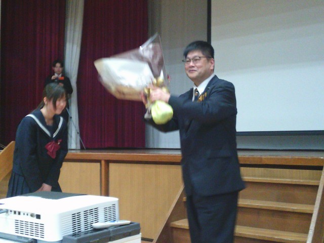 その後、校長先生への花束プレゼントのサプライズもあり、体育館はとても温かい雰囲気でした。