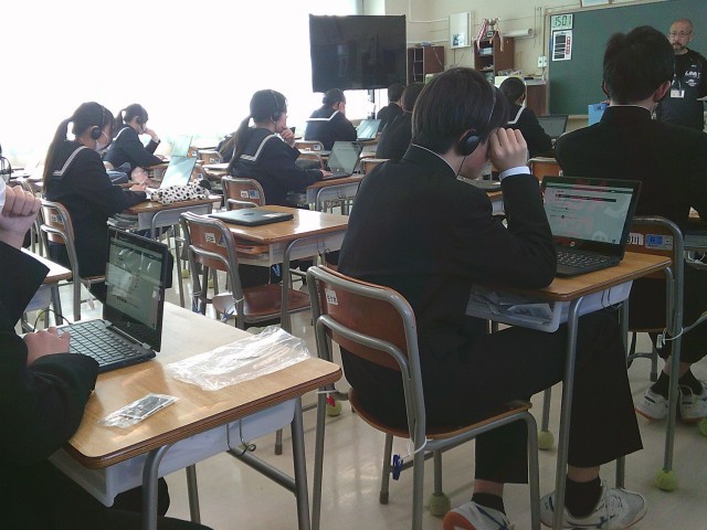 英語の「聞くこと」と「話すこと」に関するもので、ヘッドセットをつけて臨みました。