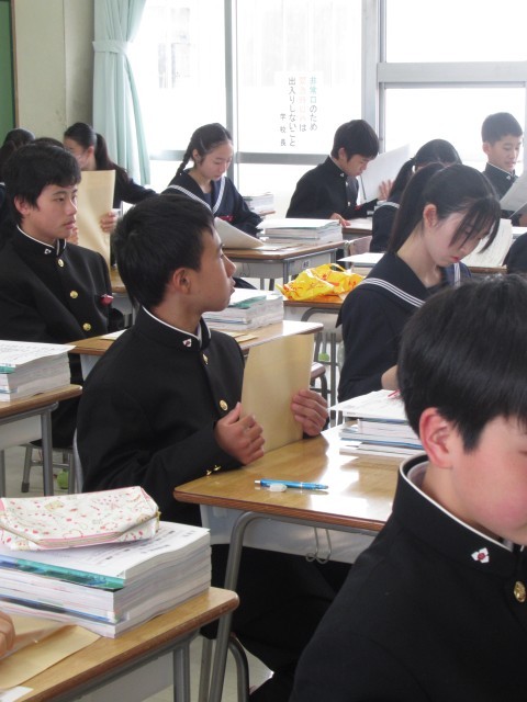 式後の学活では、しっかりと顔を上げて話を聞いている姿が印象的でした。