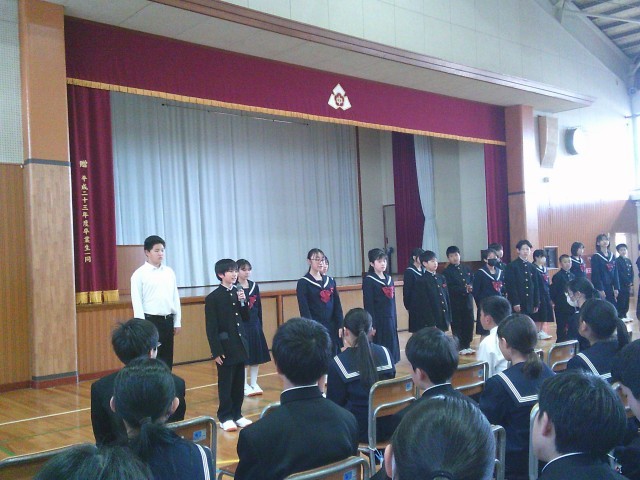 4/13(月) 1年学年集会リーダー紹介 公開日 2026/04/13 更新日 2026/04/13 学校の様子 5限目の学年集会では、今週の遠足のしおりを配布しました。また、前期の1年生を引っ張っていくリーダー24名の紹介式を行いました。昨年度から、各学年のリーダー会はクラスの会長、副会長、書記2名の4名から構成されています。遠足や学校生活をよりよくする企画など、リーダー会での取り組みがとても楽しみです。 +2
