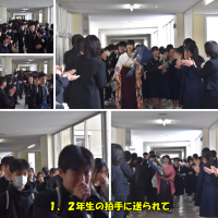 3月13日(金)卒業式前日。1階1、2年生の玄関ホール前に、3年生から1、2年生...