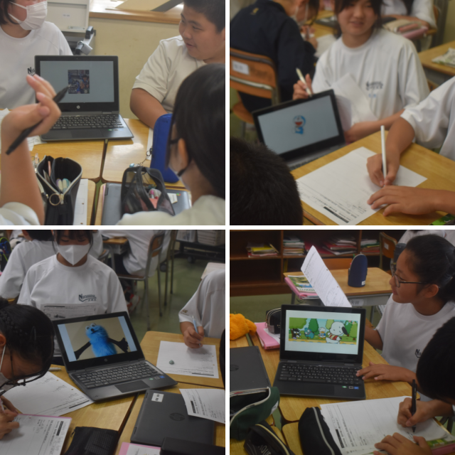 1年生英語科の授業。今日はグループになり、それぞれの”推し”を紹介しあいました。英語科では、「聞くこと」「読むこと」「話すこと」「書くこと」の4技能の習得を目指します。英語はコミュニケーションの手段のひとつですから、今日のように互いに自分の考えや気持ちを伝え合う場面はこれからもたくさんありますね。先生から示された話し手と聞き手のポイントをしっかりと意識して、さらに「良き話し手」、「良き聞き手」になっていってくださいね。