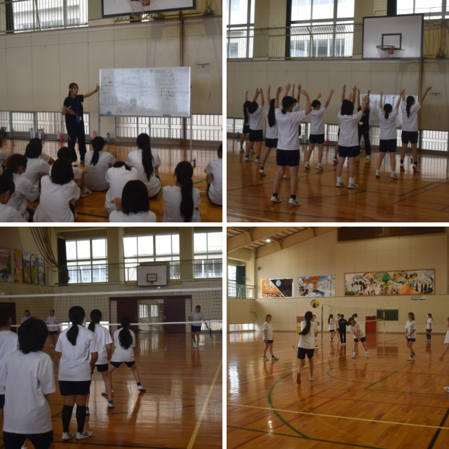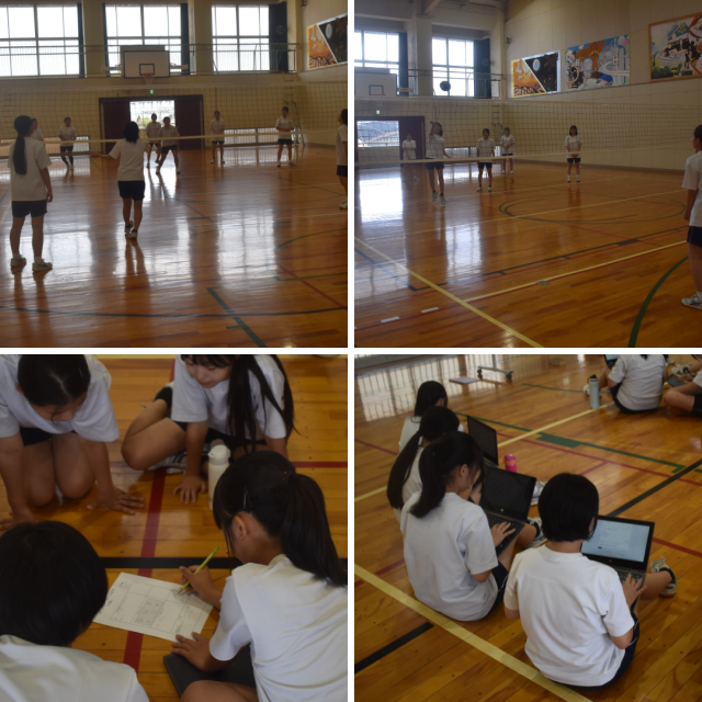 さて、本日2限目に、中村実習生の3年生保健体育科の研究授業が行われました。現在、女子はバレーボールを学習中です。今日の授業では、生徒達は、チームそれぞれの特徴を生かした戦術を話し合い、ゲーム形式の実践の中でどれだけできるかを意識して取り組みました。