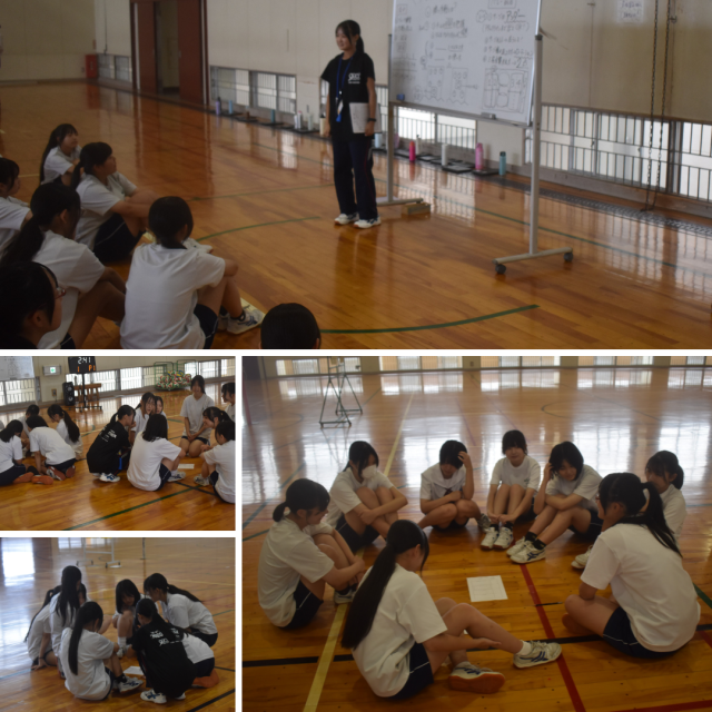 簡潔・明瞭な指示、生徒の話し合いや活動の様子の丁寧な見取りなど、大変落ち着いて授業を進めていました。中村実習生、お疲れ様でした。3年1・2組女子の皆さんもいつも通りの意欲的な学びの姿でした。