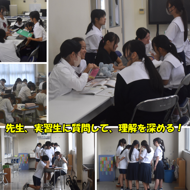 10月2日(木)、3日(金)の2日間、2学期中間テストが実施されます。今日の5限目、2、3年生は、中間テストに向けて、各教科の学習内容の定着度合いを、それぞれが確認していました。理解があいまいなところをそのままにしてテストに臨むのか、それとも、ひとつでも、少しでも、自分のものにしてテストに臨むのか、ですね。