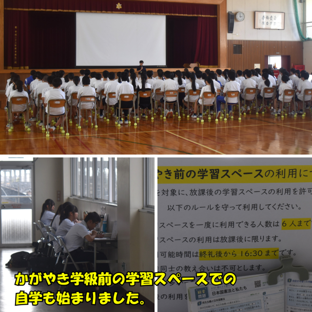 今日の6限目、3年生は学年集会を行っていました。それぞれの進路選択に向けて、志望校等を絞り込んでいく大切な時期も近づいています。先生のアドバイスに素直に耳を傾け、まずは自分自身が自分の目指すべき進路と向き合い、そして自分の思いを家の人に伝え、しっかりと話し合ってください。目の前の現実に目を背けることなく、かといって悲観しすぎることなく、日々の正しい努力を積み重ねていこう!