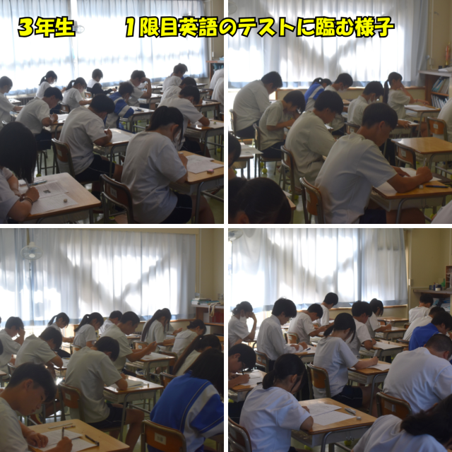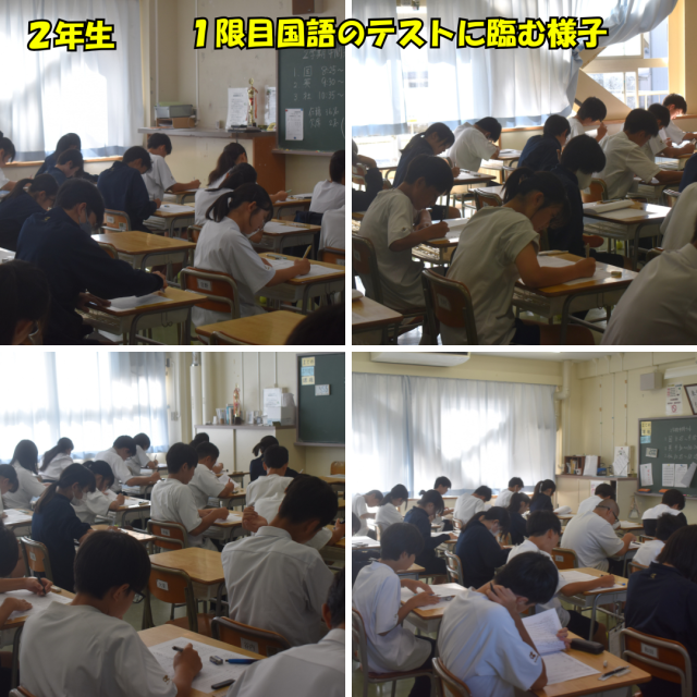 中間テスト第1日! 公開日 2025/10/02 更新日 2025/10/02 学校の様子 10月2日(木)本日は2学期中間テスト1日目、各学年3教科のテストが実施されました。生徒の皆さん、お疲れ様でした。今日の出来具合が気になるところかもしれませんが、気持ちを切り替えて、明日の2教科の学習内容の確認をしてください。