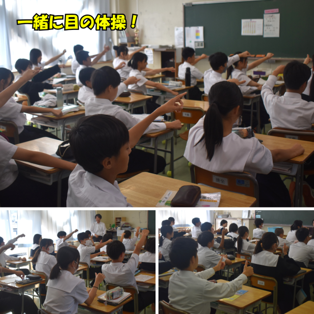 最後に一緒に目の体操に取り組みました。目を守る5つのルールの実践や目の体操を取り入れて、自分の目を大切にしていきたいですね。