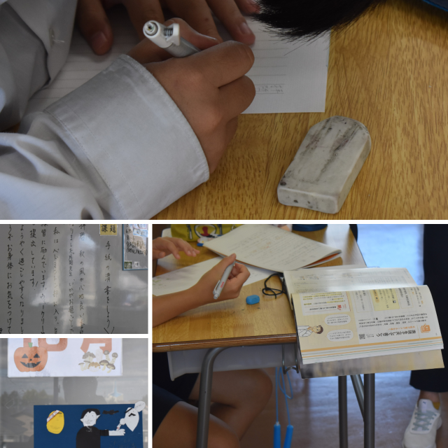 かがやき学級、2年生国語科の授業。今日は手紙の清書に取り組んでいました。1人は、昨年中1でお世話になった先生に、もう1人は、小学校時代にお世話になった先生に宛てて、一文字一文字に心を込めて鉛筆を走らせていました。受け取った先生方は、必ず喜んでくれるはずです。